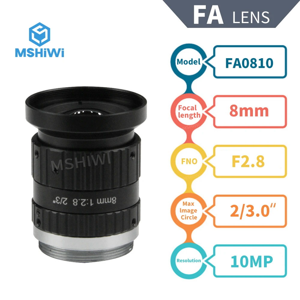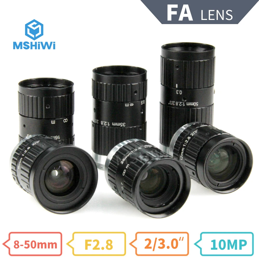 10MP 8/12/16/25/35/50 мм фиксированный фокусный объектив FA F2.8 2/3 "машинного зрения Камера объектив для видеонаблюдения визуальный промышленной автоматизации