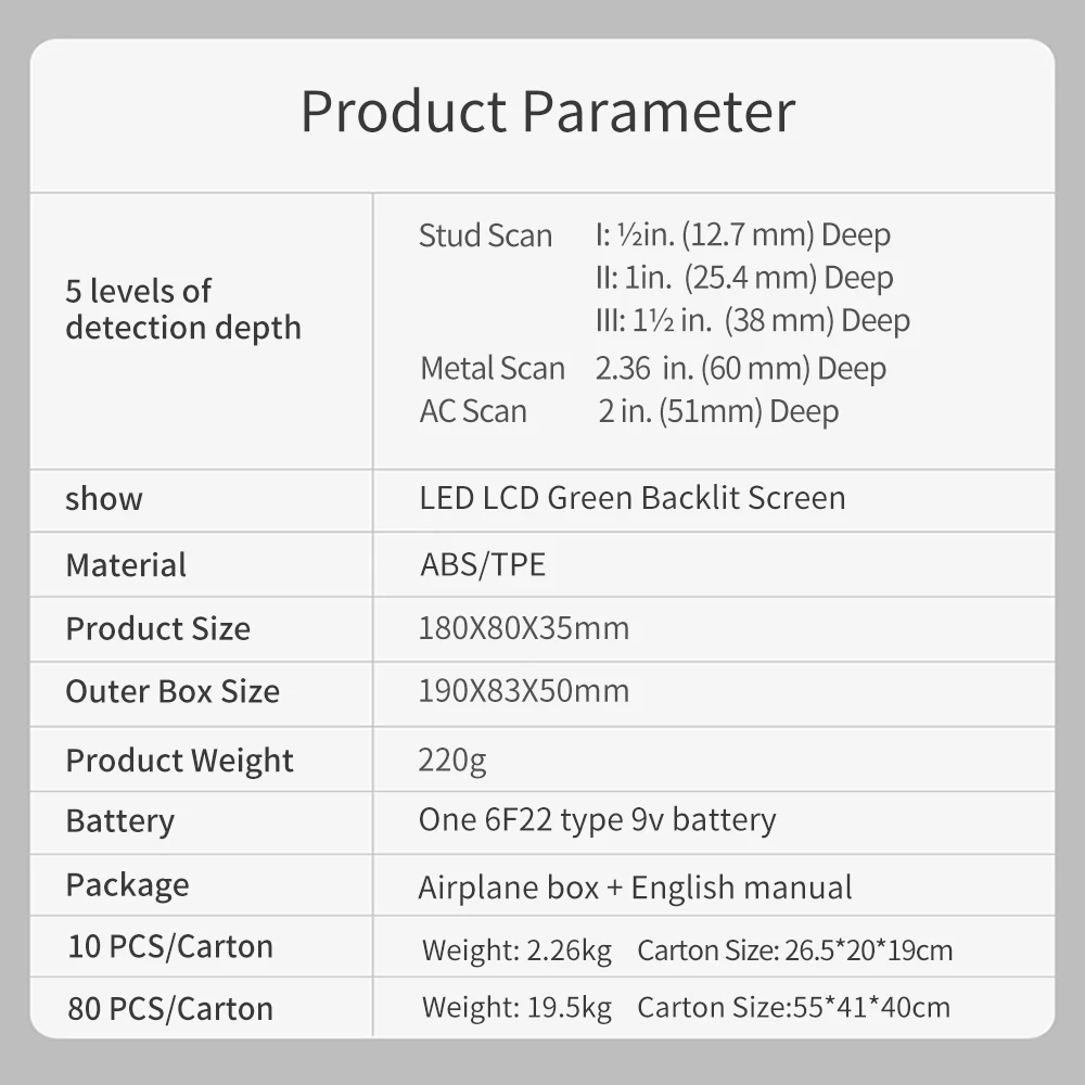 Описание:Настенный сканер для ногтей использует передовую сенсорную технологию для точного и быстрого определения местоположения деревянного металлического гвоздя переменного тока!
