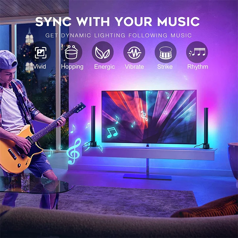 🎶Синхронизация с музыкой: умный светодиодный светильник-бар может отвечать и перемещаться в ритм вашей музыки, кино и игрового аудио, что обеспечивает захватывающий звук и светильник, как никто другой. Идеально подходит для игр, домашнего кинотеатра, музыки и т. Д.
