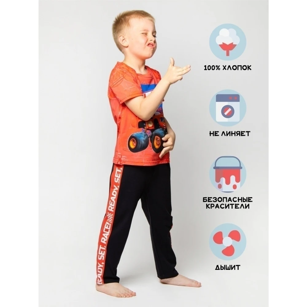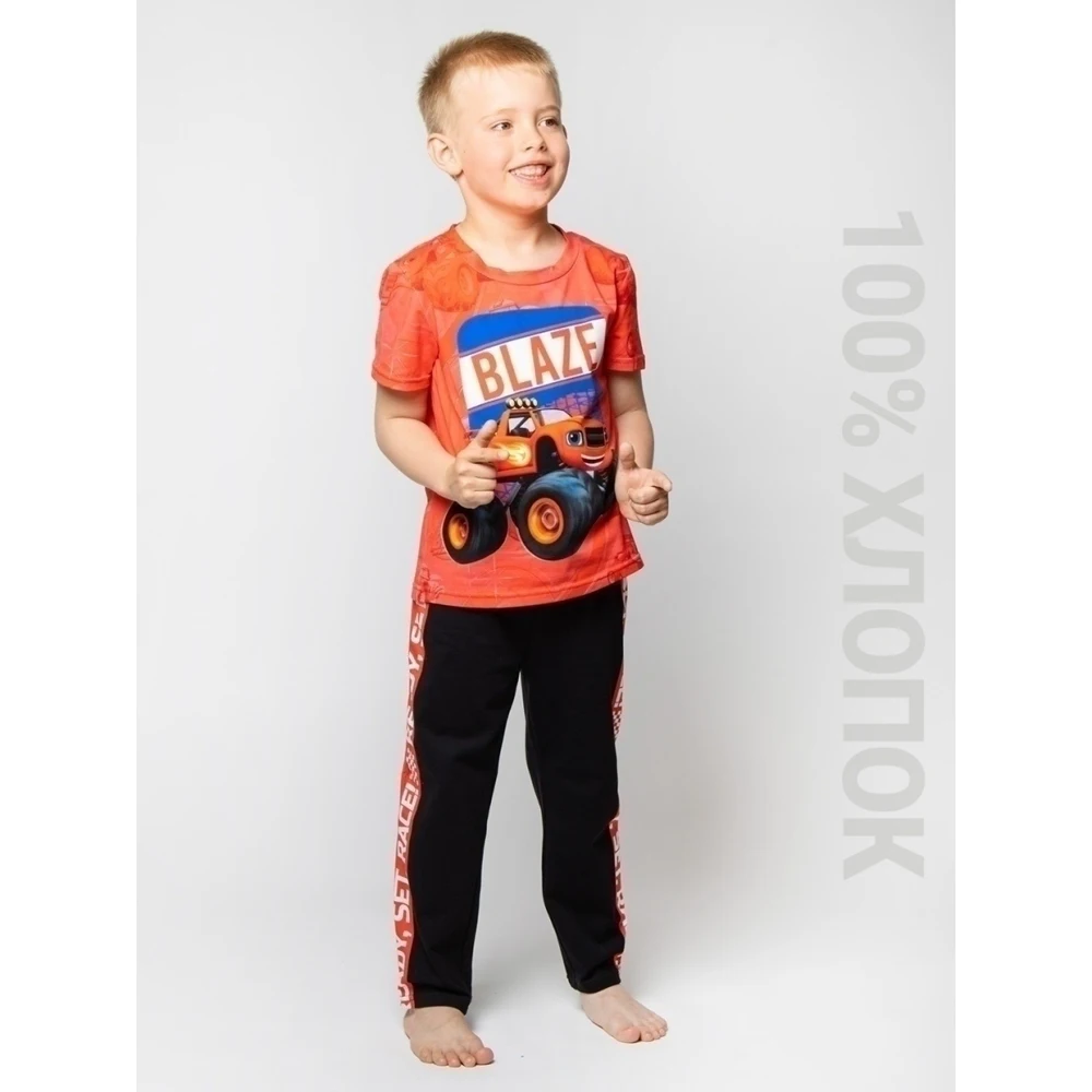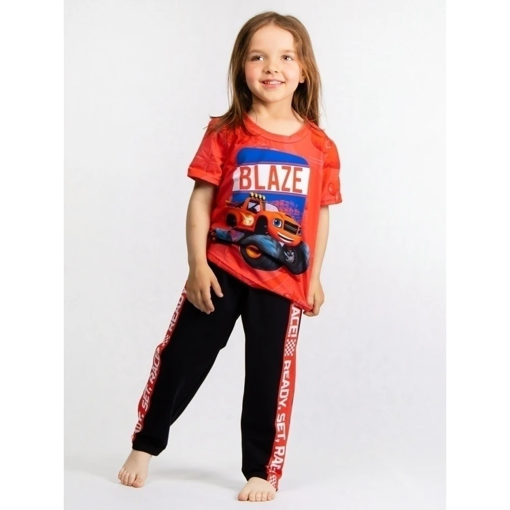 Стильная пижама c принтом Вспыш / Вспышки / Чудомашинки / Blaze and the Monster Machines из 100% хлопка - не оставит равнодушными ребенка!
