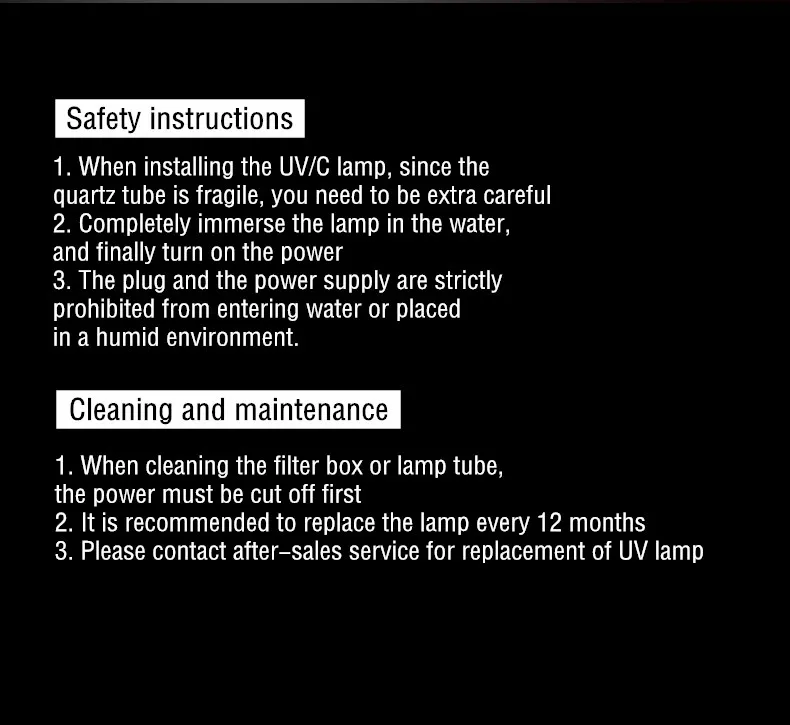 Please choose a suitable lamp according to the size of your fish tank and filter-tank.