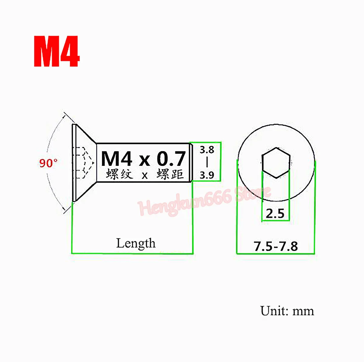 Шаг резьбы: M3 * 0,5/M3.5 * 0,6/M4 * 0,7/M5 * 0,8/M6 * 1