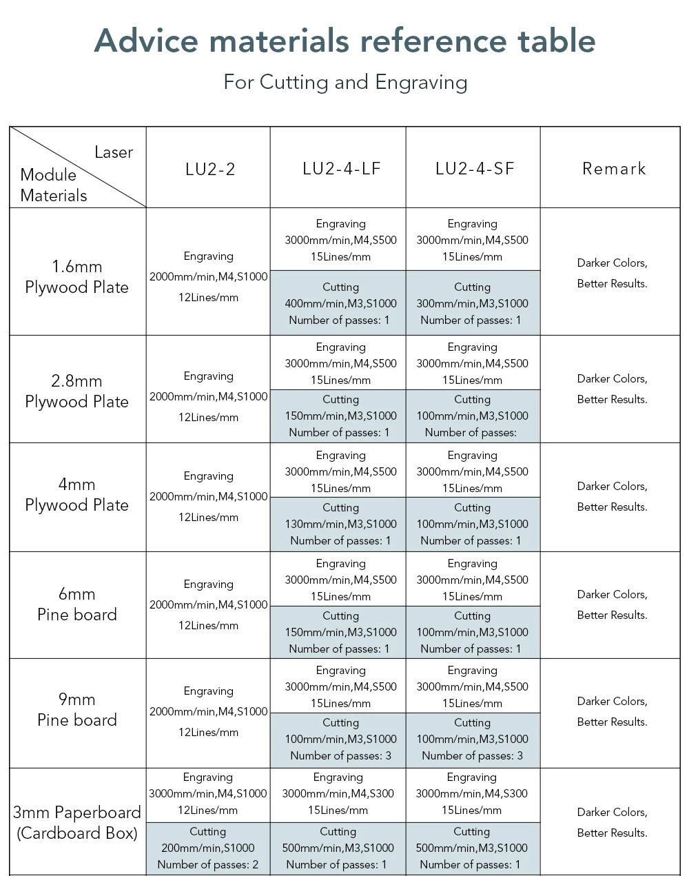 Советы: 1. LU2-4-LF хорошо гравирует и лучше режет, и может поддерживать более высокую скорость.