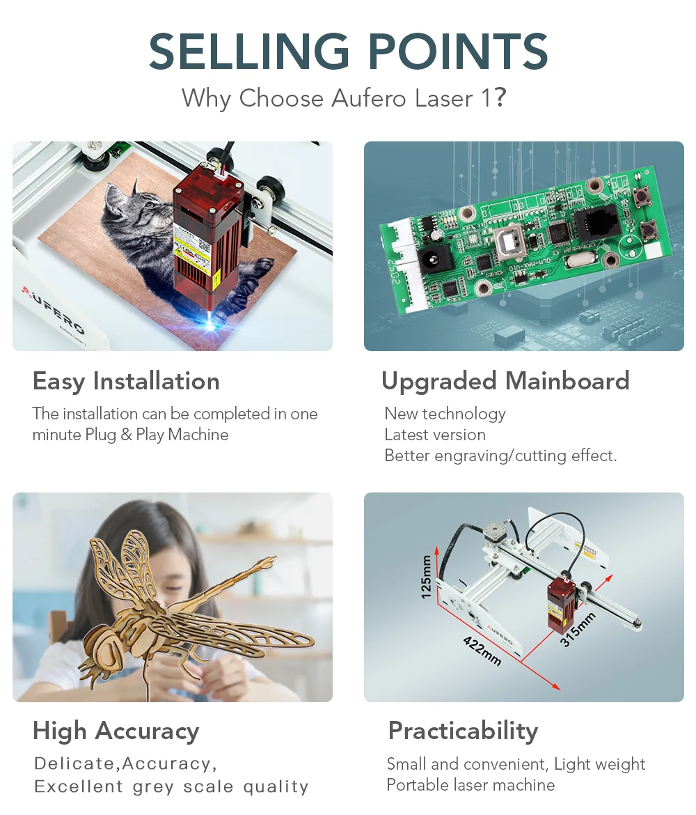 [Aufero AL1]"Технология ORTUR, при начальном уровне ценообразования" AL1-это бюджет, Машина начального уровня для инициированного пользователя с более высокой надежностью системы, гладкой гравировкой, более быстрой скоростью гравировки, более высокой точностью, И более изысканные гравировальные изделия. Plug & Play Machine!