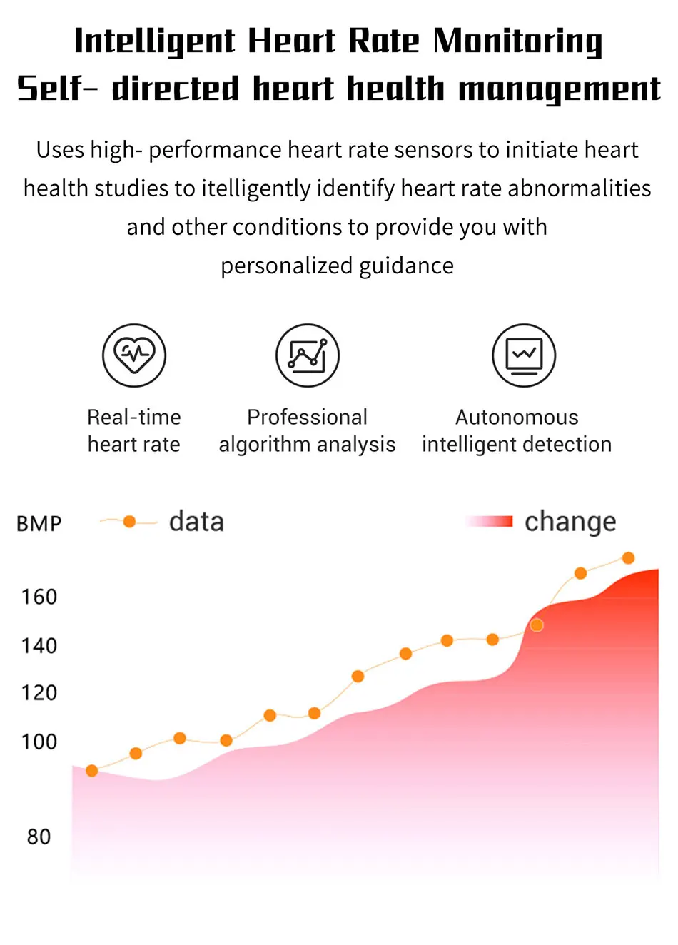 4. Большие функции: мониторинг сердечного ритма, мониторинг ЭКГ, кровяное давление, мониторинг уровня кислорода в крови, через светодиодный датчик зеленого света, для анализа кровотока под кожей, чтобы избежать чрезмерного пульса, вызванного неразумными упражнениями.
