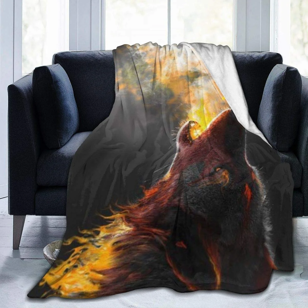Hawkalice Фланелевое Флисовое одеяло с 3D-принтом животных Золотая Луна волк всесезонный теплый светильник уютное плюшевое одеяло