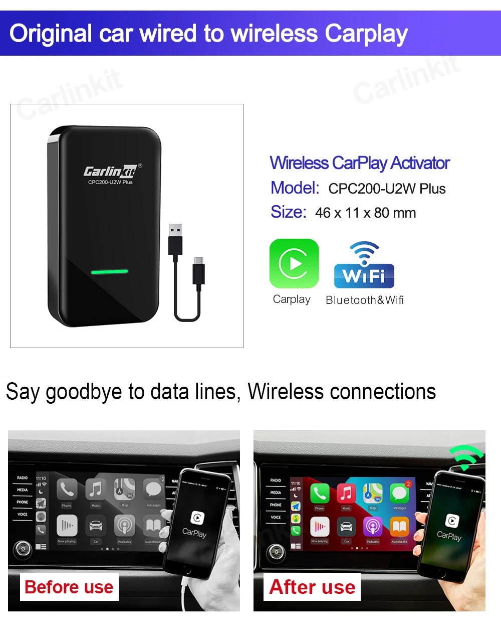 Примечание:Carlinkit настоящим объявляет, что в отношении "Carlinkit 3.0 беспроводной активатор CarPlay на AliExpress: продукт такой же, как и Carlinkit 3,0, мы только что сделали чип лучшего качества для обновления оригинального продукта. Чип делает продукт более стабильным и адаптируемым. Но в сущности, они имеют ту же функцию: пусть автомобиль встроенный проводной OEM CarPlay может использовать беспроводную CarPlay.