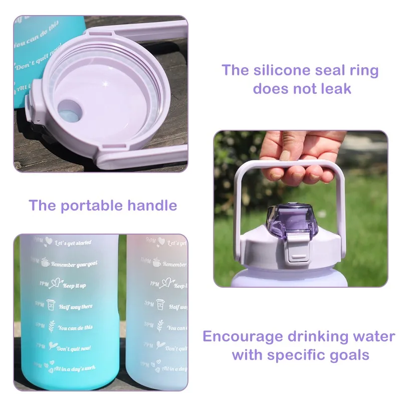 <Большая емкость: Емкость составляет 2000 мл, а удобная Герметичная крышка с соломой может помочь вам пить напрямую.