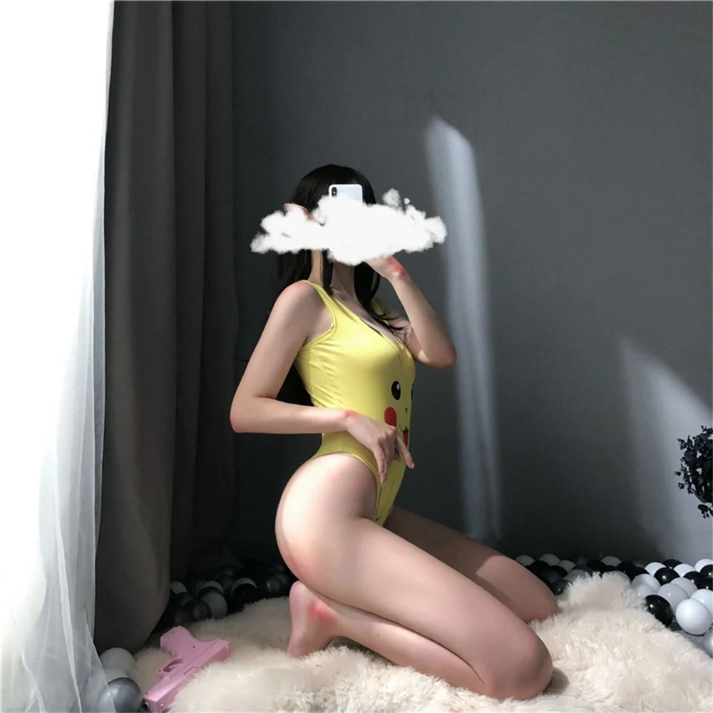 Сексуальный милый желтый Костюм Пикачу из комиксов, анимационный стиль, школьный купальник, комплект нижнего белья, открытая промежность, косплей, Униформа, комбинезон, боди