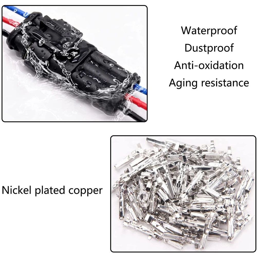 【High-Quality Car Connectors】Car waterproof connectors are made of high-quality environmentally friendly materials, with high chemical stability, electrical conductivity and oxidation resistance, waterproof, dustproof, and safe. The snap design of the automotive wire connector ensures accurate and complete insertion of the contacts into the housing and prevents them from slipping out of the power plug connector. Easily removed if necessary.