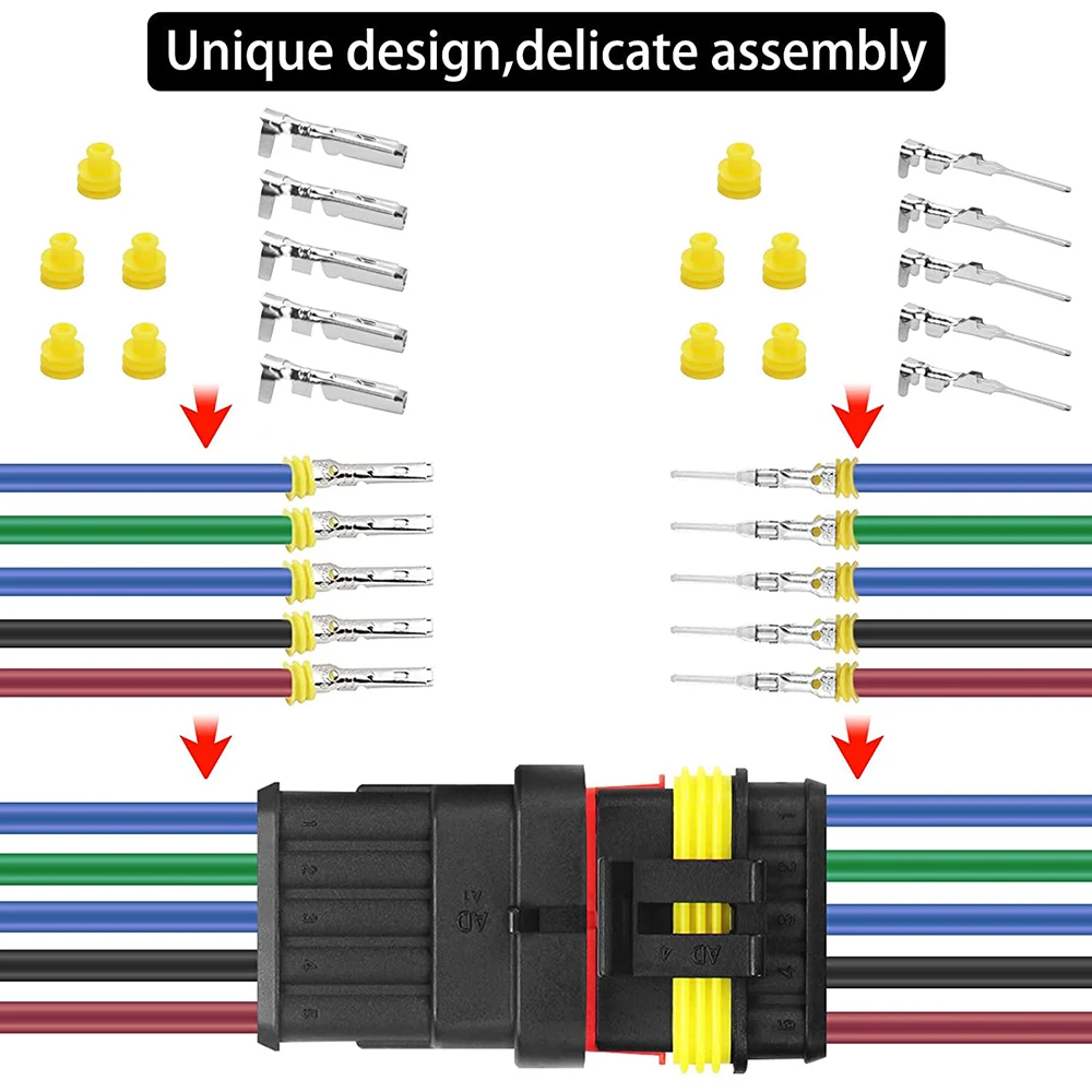 【Package Contents】(708pcs/43pcs set) 1/2/3/4/5/6 pin automotive super seal waterproof wire connector set with male and female terminals and silicone rubber cable seal. 1-6 Pin Waterproof Connectors: Contains a total of 43 sets of automotive waterproof connectors to meet most of your needs.