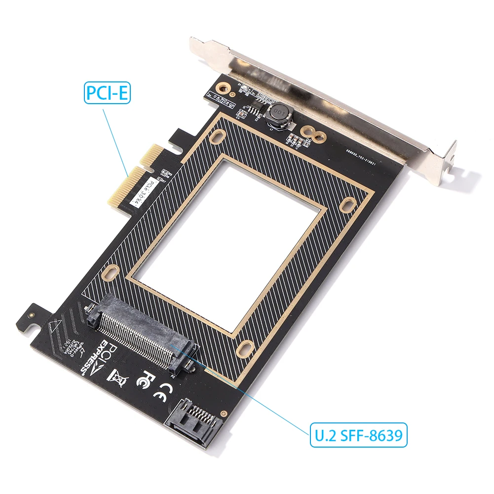 Компьютерная шина PCI-E X16 U.2 SFF8639 2,5-дюймовый NVMe SSD адаптер напрямую подключается к материнской плате, он поддерживает Сверхбыстрый PCI-Express V3.0 X16 каналов, полоса пропускания до 32GT/S, И может поддерживать U.2 SFF-8639 2,5 дюйма SSD объем накопителя. Благодаря этому адаптеру скорость системы может быть увеличена, и эффективность офиса и развлечений может быть улучшена.