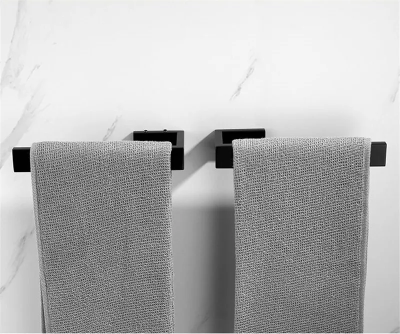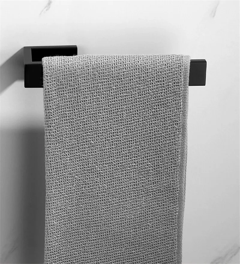 Brushed Gold 304 Stainless Steel Bathroom Towel Ring/Rack Bath Hardware Shelf Nail Punched Wall Mounted Square Type Nickel/Black