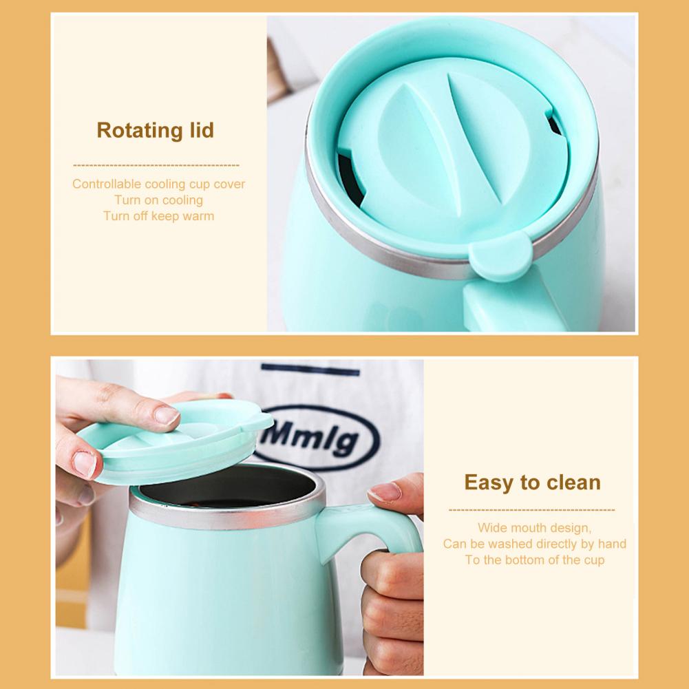 С помощью вращающейся крышки и вентиляционных отверстий кружка из нержавеющей стали позволяет контролировать температуру, изменяя скорость охлаждения жидкости.
