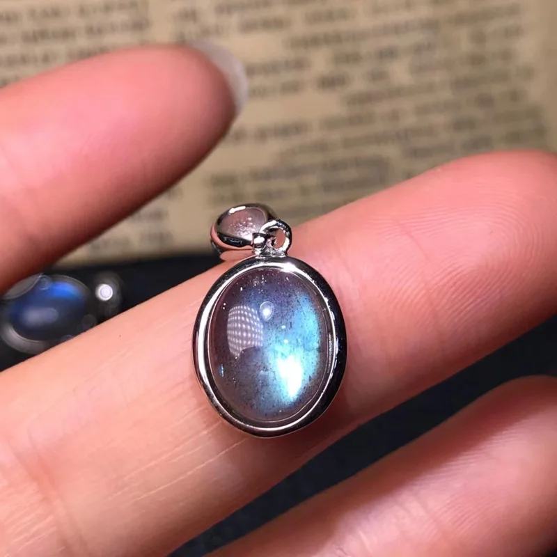 CSJ Genuine Natural Labradorite Pendants Sterling 925 Silver Chatoyant Gemstone 8*10mm for Women Party Birthday Gift