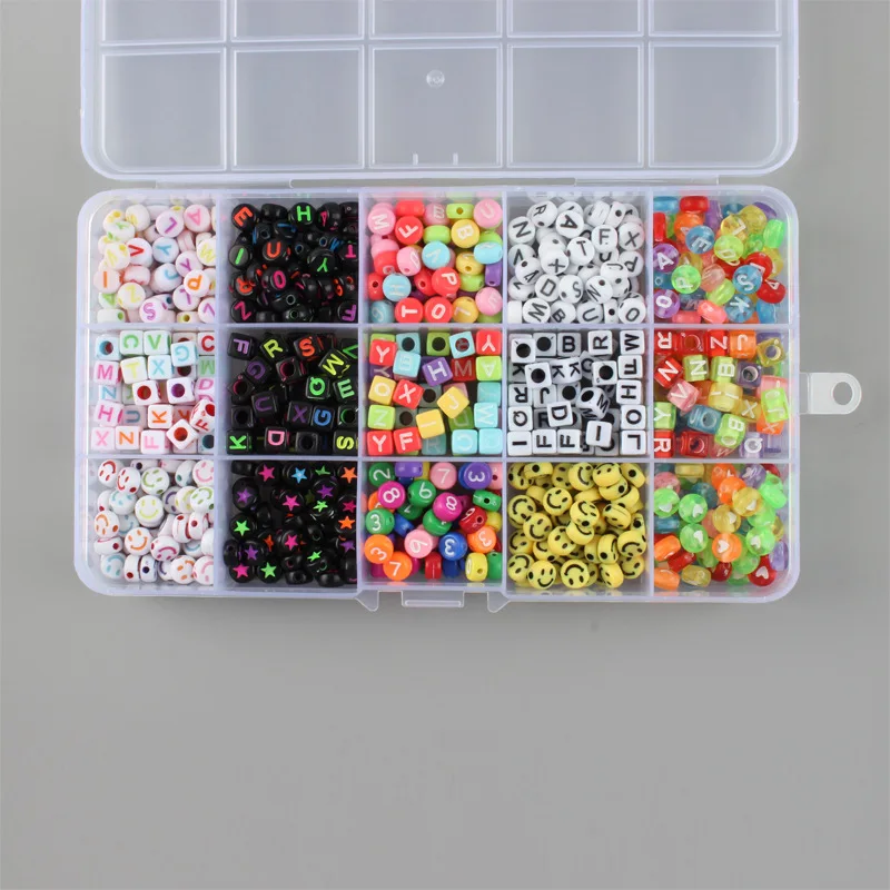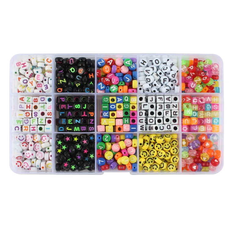 750Pcs/Set Jewelry Making Kit Number Letter Acrylic Beads Smile Square Round Alphabet ABC Spacer Beads DIY Bracelets Necklace
