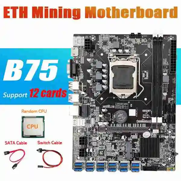 Материнская плата B75 ETH Mining с ЦП + кабель переключения + кабель SATA LGA1155 12 PCIE к USB MSATA DDR3 B75 USB BTC материнская плата