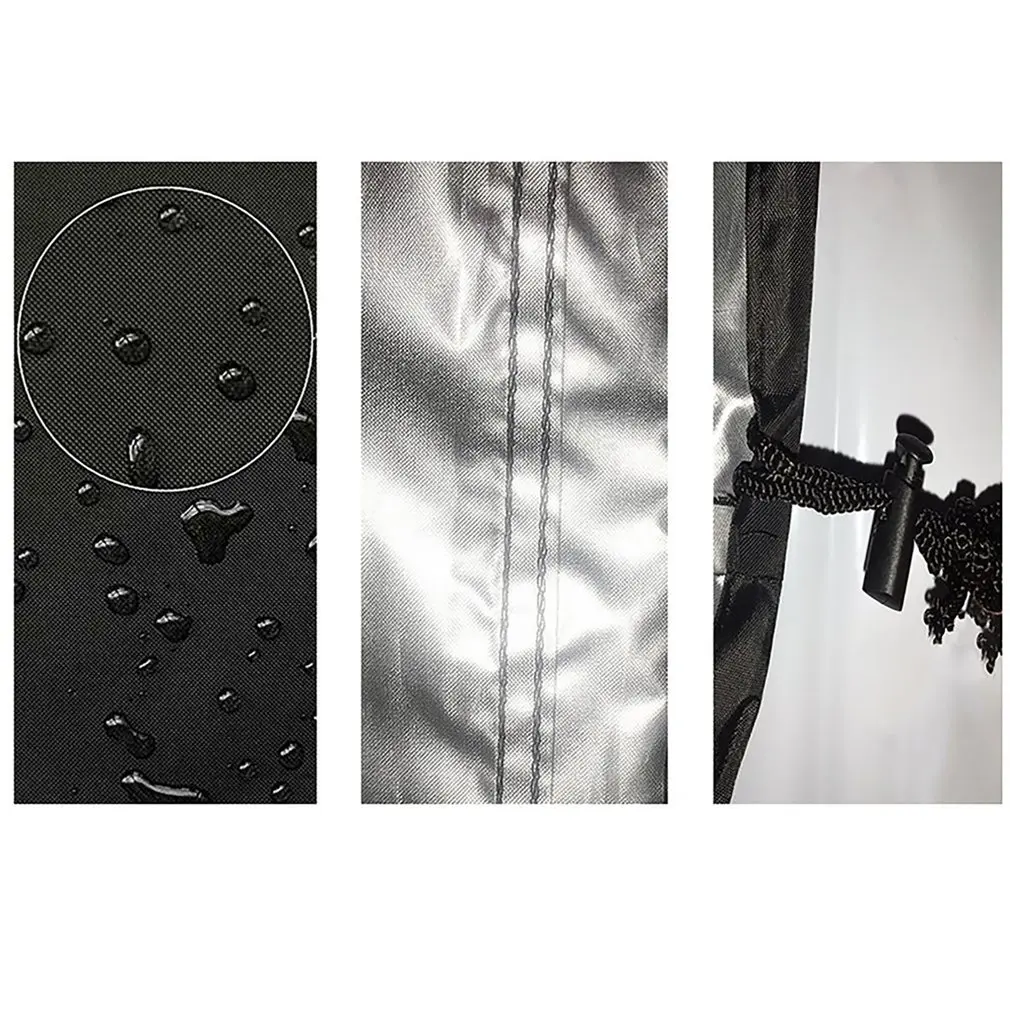 Особенности: 1. Анти-ультрафиолетовые лучи: сетчатая структура предотвращает ультрафиолетовые лучи с очень высоким уровнем защиты от солнца, специальные материалы и анти-ультрафиолетовые лучи. 2. Водоотталкивающая ткань: слой состоит из полиэфирной ткани, которая является экологически чистой, без запаха, водонепроницаемой, водоотталкивающей, дышащей, влагопроницаемой и защищенной от пятен. 3. Легко носить с собой: чехол маленький и портативный и не занимает места. Это больше подходит для оборудования, которое легко носить с собой в путешествиях на открытом воздухе. 4. Нейлоновый шнур: оснащен изысканным и прочным нейлоновым шнуром, который может контролировать герметичность и может быть легко зафиксирован в любом требуемом положении. 5. Моющаяся: Этот чехол для мебели можно мыть вручную или машинкой, когда он грязный, и он не выцветает легко и быстро сохнет. Описание: Защитите вашу садовую мебель от дождя, пыли, грязи, ржавчины и зеленых водорослей с этим защитным чехлом. Будь то гостиная группа, стул или другая садовая мебель-с нашим покрытием Ваша мебель защищена от плохой погоды. Характеристики: Цвет: серебристый Категория: чехол для мебели Материал: полиэстер Размер: 242*162*100 см, 308*138*89 см, 213*132*74 см, 180*120*74 см, 126*126*74 см, 123*61*72 см (опционально) Посылка включает в себя: 1 * чехол для мебели