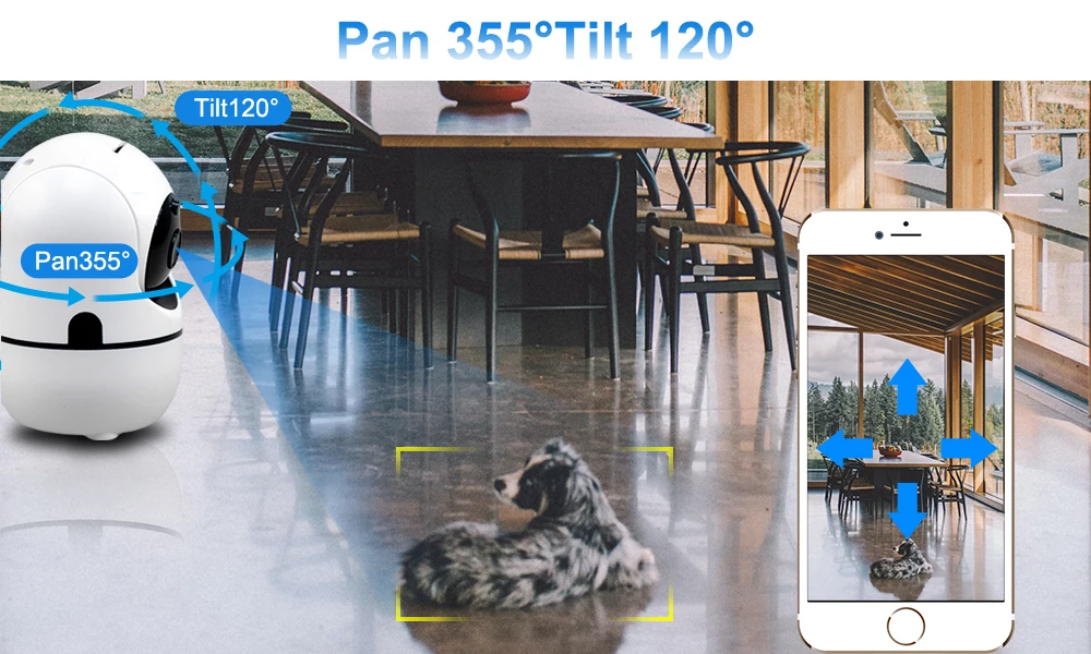 Download the Tuya app, set up your security system in minutes, slip your finger on screen to make the camera rotate up/down/left/right ( Horizontal 355°,Vertical120 °), monitoring any you want.