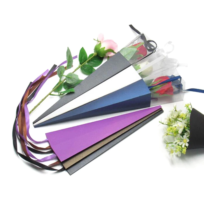 Треугольная коробка с розами в форме конуса, коробка с одним букетом для Дня матери