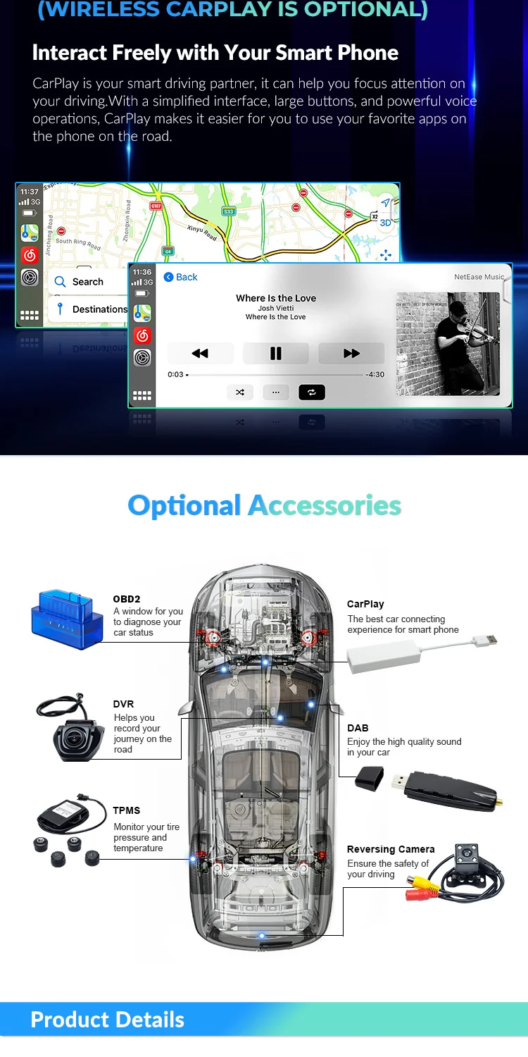 2G/4G/6GВстроенная память32 г/64 г/128 гИнтернетВстроенный Wifi moudle и можно подключить 4G USB ключ (2 + 32G)Встроенный Wifi moudle и 4G LTE, можно вставить 4G sim-карты напрямуюБТ5,0ПрименениеБесплатное приложение Plenfitul, Google playВидеорегистраторВстроенная Автомобильная DVR программа (Работает С опциональной USB DVR камерой)ПоддержкаDSP/RDS/FM/PIP/Slipt экран и т. Д.ВстроенныйПроводной CarplayПоддержкаAHD камераДополнительная функцияКамера заднего вида