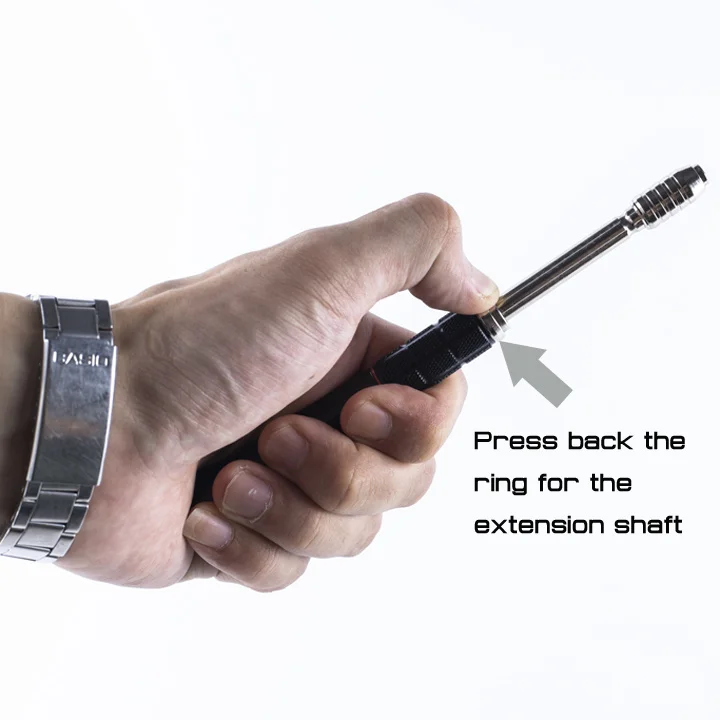 3. Эргономичный драйвер: патентный дизайн с противоскользящим покрытием, свободный конец, удлиненный вал внутри, который может быстро всплыть, нажав на кольцо;