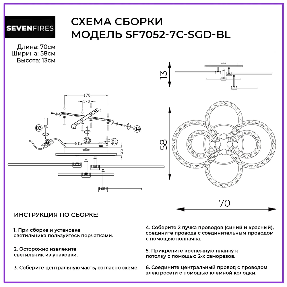 У бренда Семь Огней широкий ассортимент-люстра,люстра подвесная,люстра потолочная,люстра потолочная светодиодная,светильник потолочный,светильник светодиодный потолочный,бра,светильник настольный,светильник напольный,светильник настенный.Компания предъявляет высокие требования к производимой продукции,что подтверждено сертификатами качества.