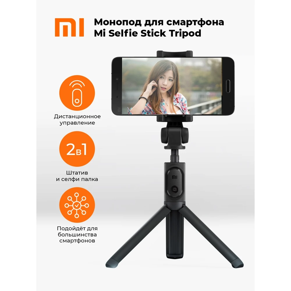 Монопод-трипод селфи палка Xiaomi Mi, Bluetooth, черный