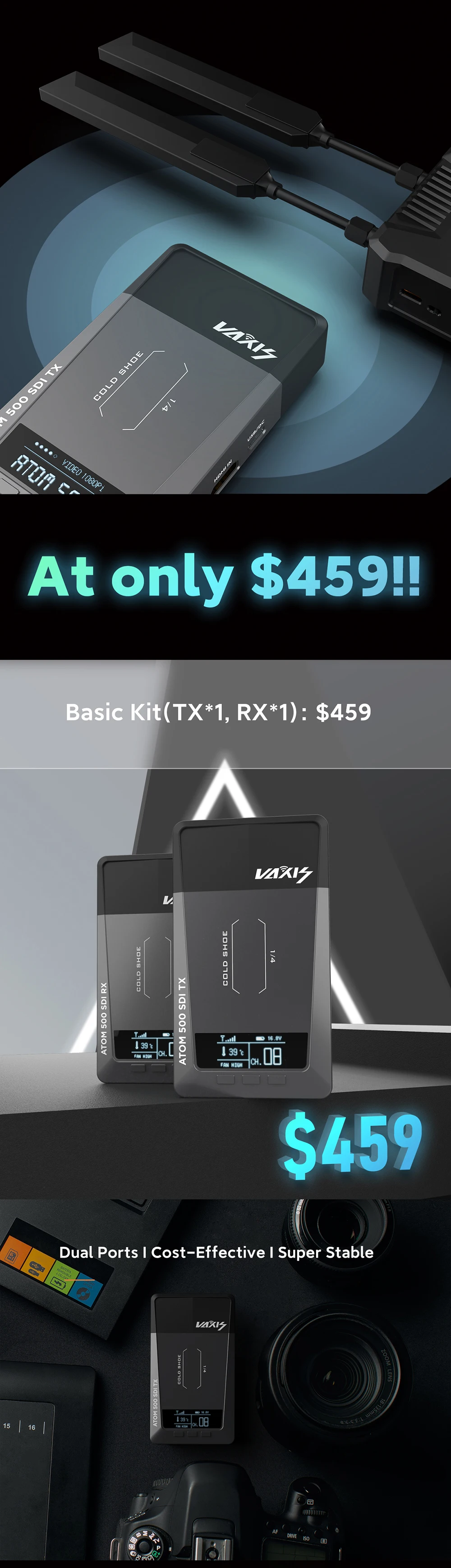 -Двойная система электропитания, поддержка типа C hot plug, может заменить батарею во время работы с подключенным источником питания Type-C, чтобы обеспечить бесперебойную съемку 12. 13 каналов для выбора, автоматическое сканирование каналов при запуске, перед выбором наилучшего канала рекомендуется отсканировать каналы с помощью TX, чтобы убедиться в точных результатах.