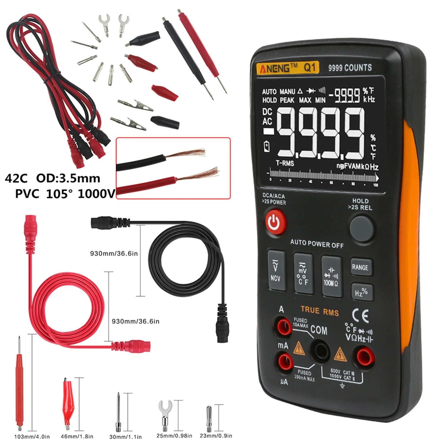 Многофункциональный цифровой мультиметр: для измерения переменного/постоянного тока, напряжения переменного/постоянного тока, сопротивления, непрерывности и диода, емкости, частоты и рабочего цикла, температуры и тестирования NCV.
