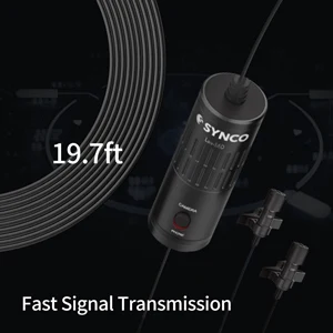 SYNCO Lav-S6D,Двойная головкаКонденсаторный микрофон lavalier, сочетает в себеCVCАвтоматическое шумоподавление и технология синхронного декодирования аудио для доставкиВысококачественный звукС богатыми деталями и меньшим количеством шума. С6 м/19,7 футовПрочный аудио кабель, он поднимает два источника звука на больших расстояниях одновременно.