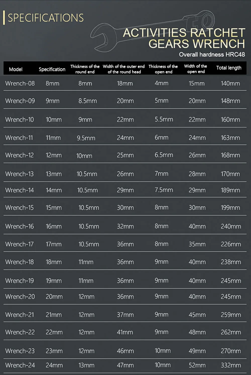 2. Размеры: 6/8/9/10/11/12/13/14/15/16/17/18/19/20/20/21/22/23/23/24 мм