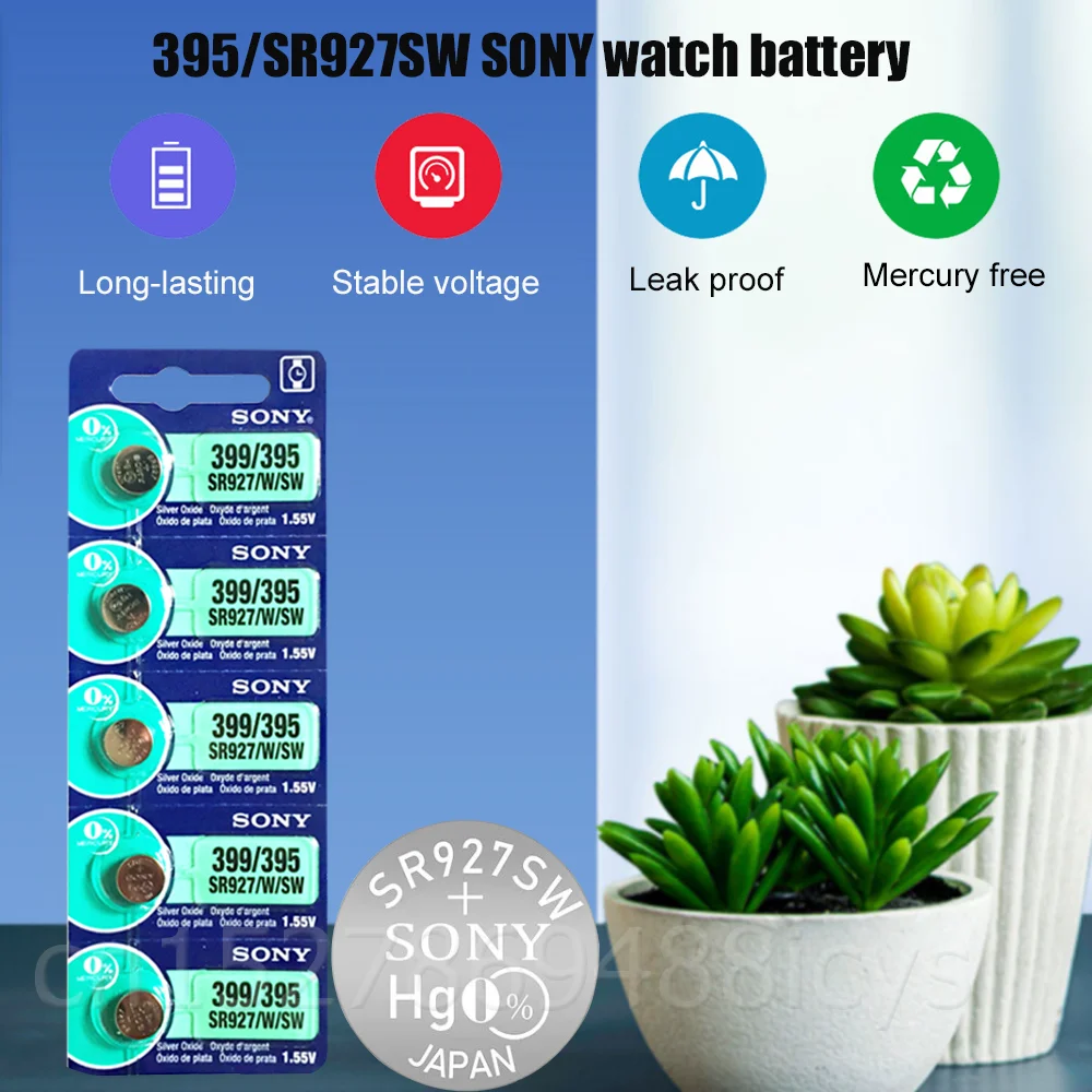5 шт. оригинальный аккумулятор Sony 395 SR927SW SR927W LR927 AG7 399 1,55 V с оксидом серебра для часов игрушки автомобильный ключ пульт дистанционного управления Кнопка монета