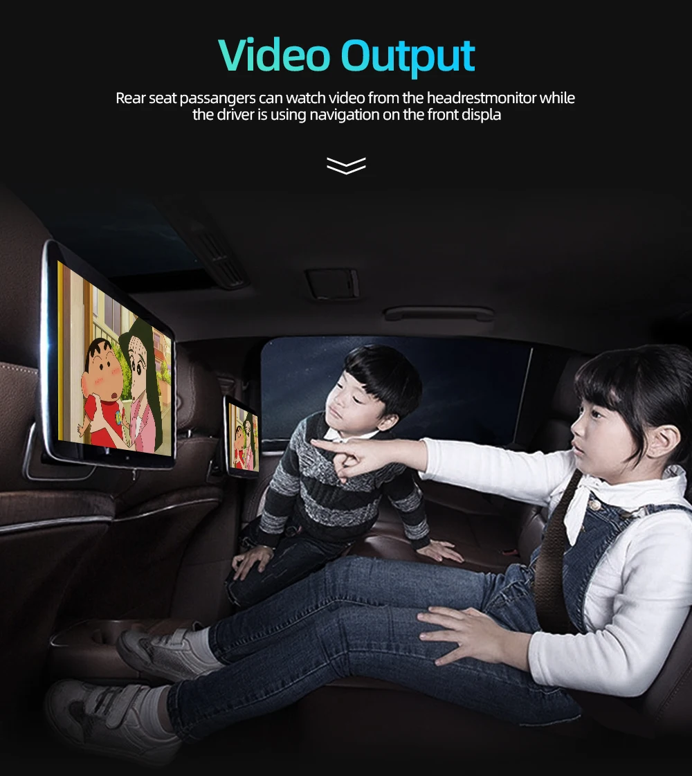 Android стерео поддерживает видео выход в двух мониторах. Задние пассажиры могут наслаждаться просмотром видео