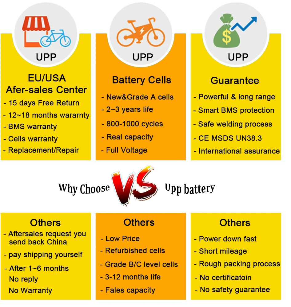 Это действительно зависит от приложения и может быть трудным вопросом. Сначала вам нужно получить напряжение батареи в соответствии с вашим запросом двигателя, затем емкость, высокая емкость может сделать ваш велосипед более продолжительным, но более дорогим, также необходимо выбрать правильный Ампер BMS, чтобы соответствовать вашему двигателю. Проведите исследование, если это ваш первый набор ebike, чтобы убедиться, что вы получаете правильный аккумулятор для ваших потребностей.