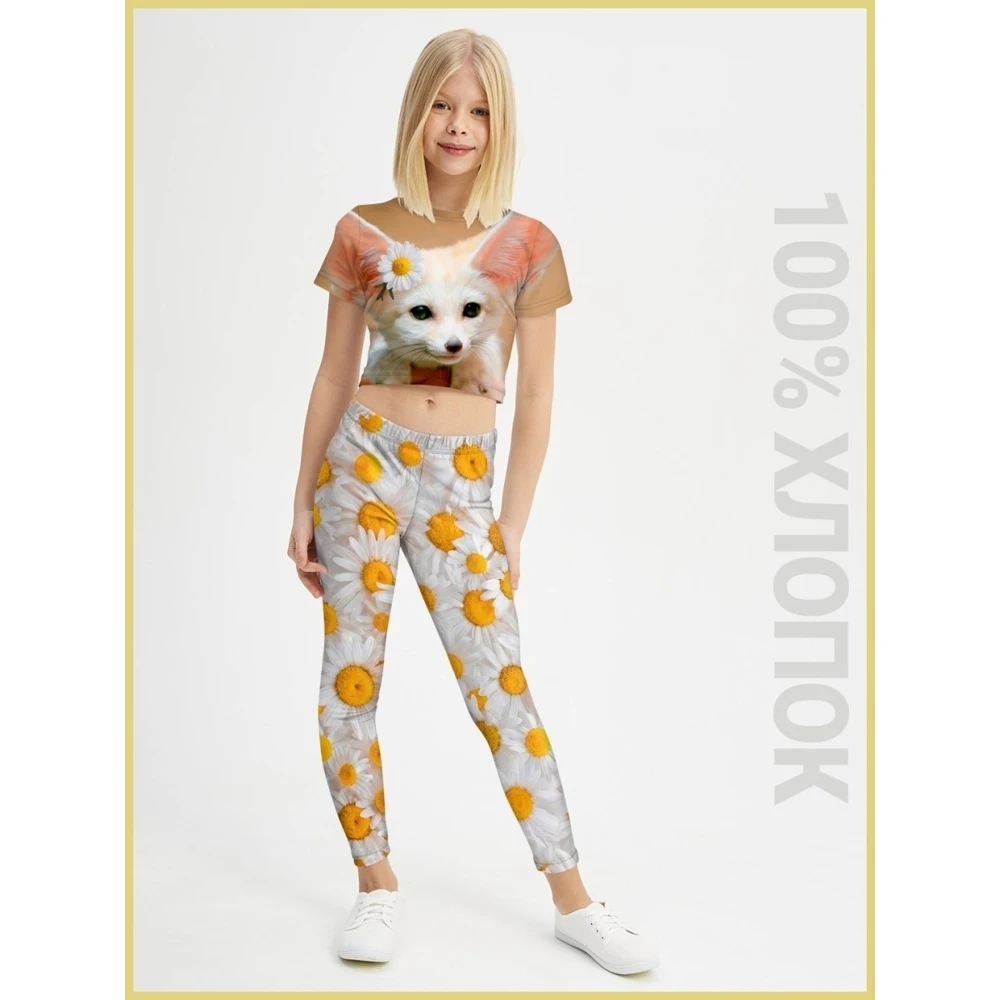 Стильный хлопковый костюм c яркой расцветкой Лисички из хлопка - не оставит равнодушными девочек!