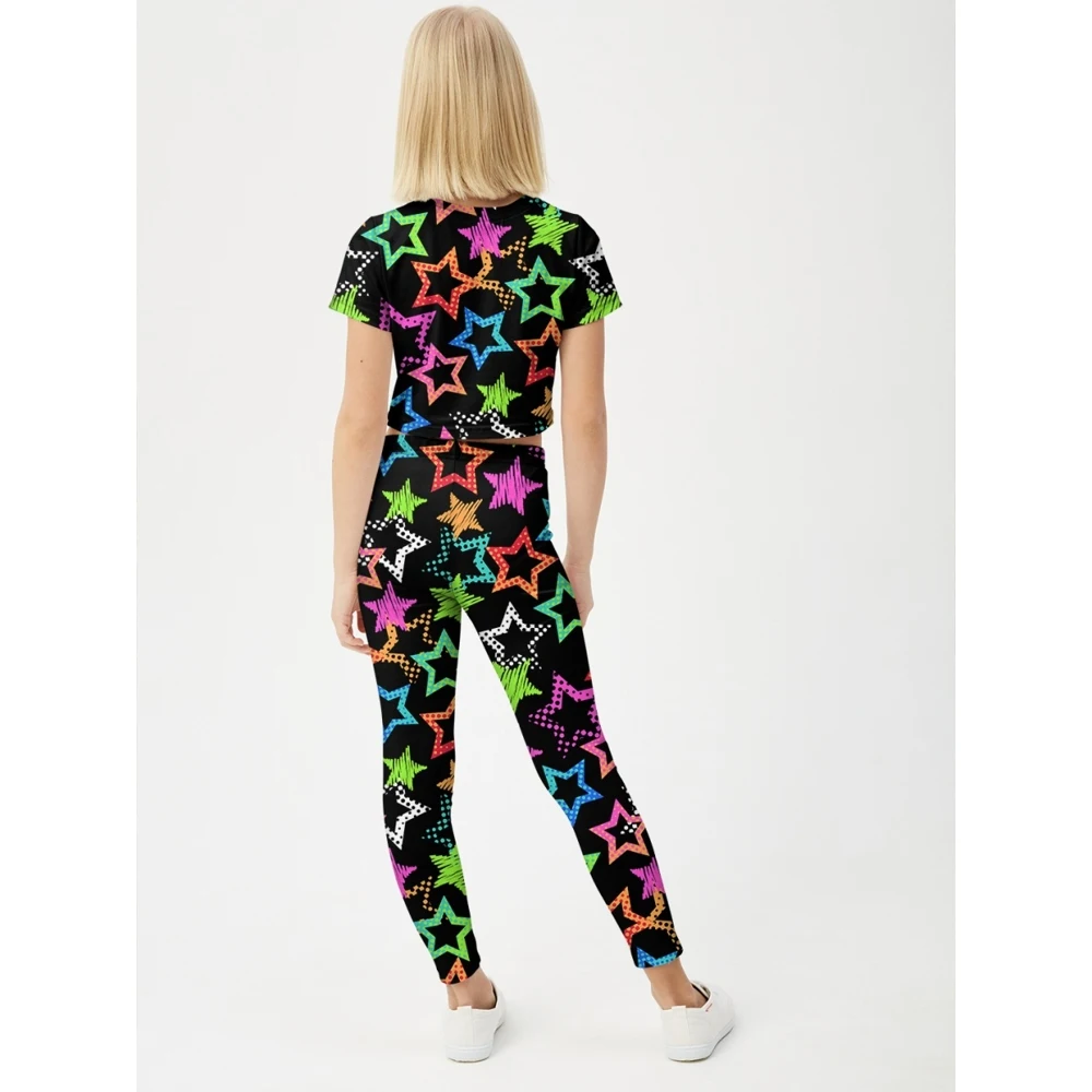 Идеален для танцев, гимнастики и домашнего времяпровождения или прогулок, т.к. трикотаж мягкий, яркий принт не ощущается на ощупь.