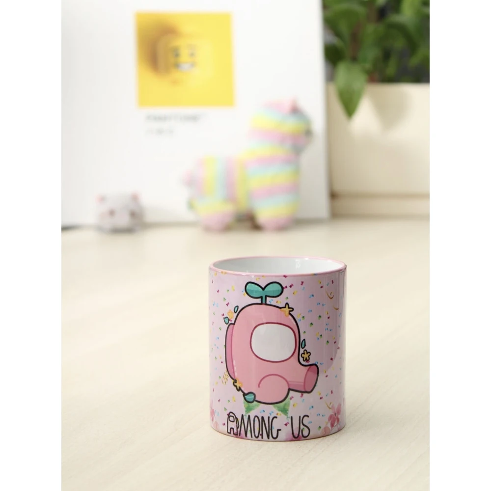 Кружка с принтом Among Us, который наносится по всей внешней поверхности, кроме прямоугольника у ручки.