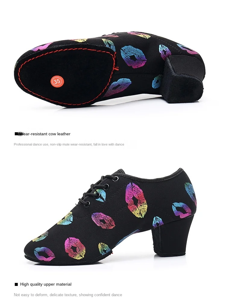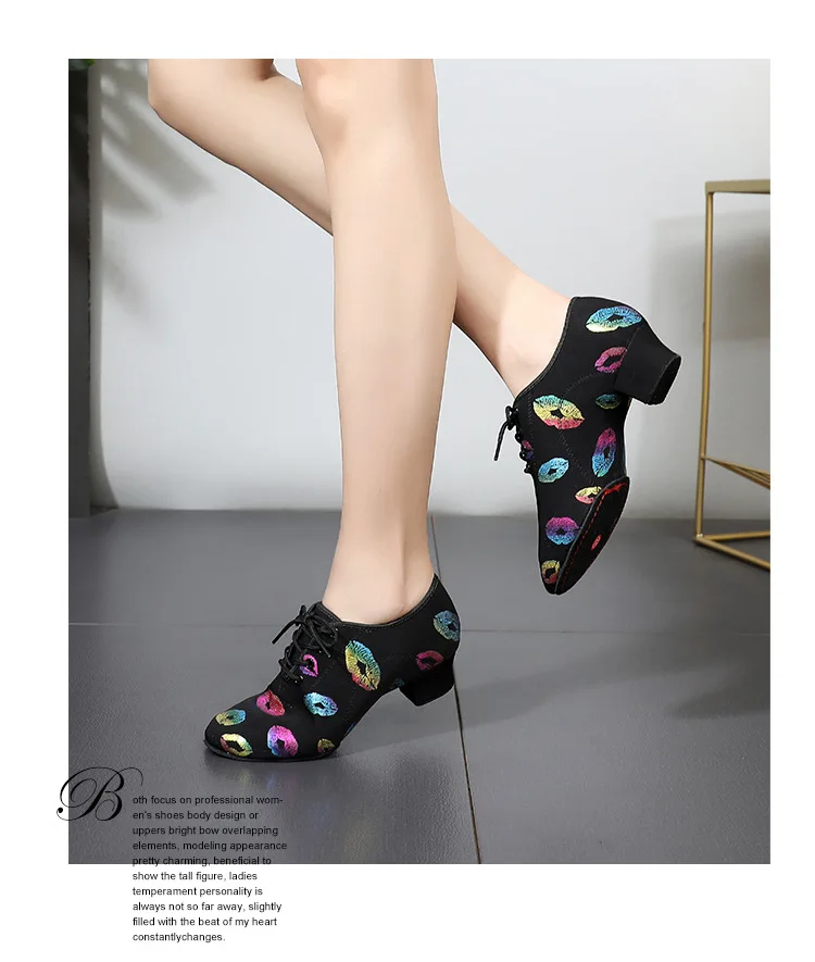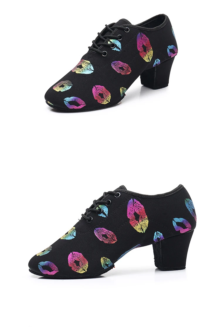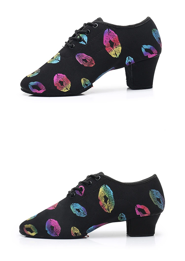 Танцевальные Кроссовки с принтом губ для девочек; Детская обувь для бальных танцев; Обувь для латинских танцев; Цветная спортивная обувь с закрытым носком; Оптовая цена