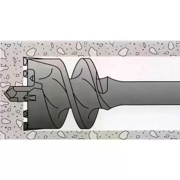 Бур проломной SDS-Max СТС-031 для перфоратора 60x550 мм – прочный, надежный и износостойкий бур, предназначенный для бурения углублений и отверстий большого диаметра в кирпиче, бетоне и прочих минеральных основаниях, в том числе и армированных. Состоит из хвостовика с 4 пазами (2 открытых и 2 закрытых), тела с глубокой спиралью для отвода шлама и твердосплавного наконечника с острыми режущими кромками и центрующим сверлом. Не требует предварительного накернивания поверхности. Стойко выдерживает высокие ударные нагрузки. Бур проломной не деформируется при интенсивной эксплуатации и не подвергается коррозии. Прост и безопасен в эксплуатации.