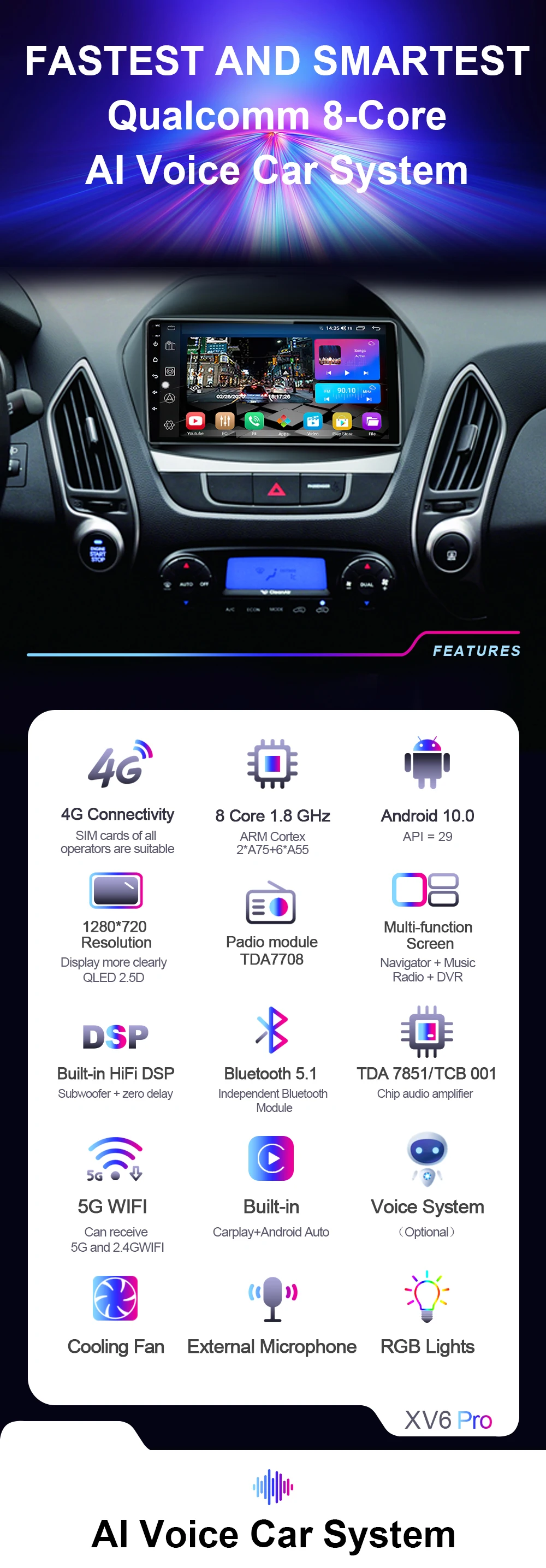 XIMA XV6 Pro встроенный CarPlay + Android Auto поставляется с функцией carplay, не нужно приобретать дополнительные аксессуары.