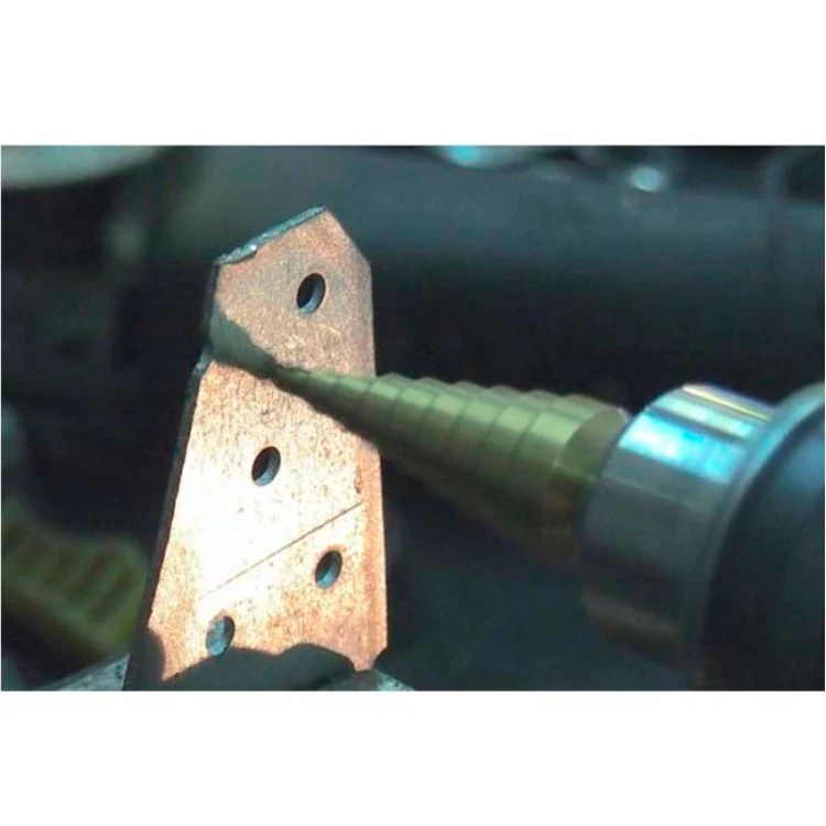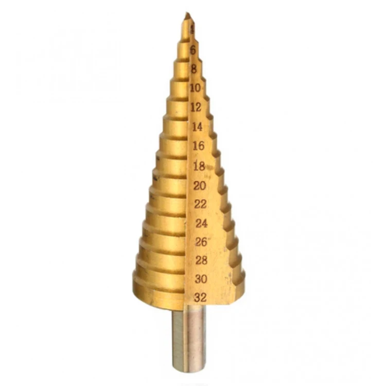 Сверло ступенчатое W4 СТМ-522 по металлу выполнено из высокопрочной полированной стали, легированной кобальтом и титан нитридом. Имеет 15 ступеней с ходом 2 мм. Наделено цилиндрическим хвостовиком. Предназначено для совместного использования с дрелью и шуруповертом. При применении патрона для дрели и переходника SDS-plus сверло также можно устанавливать на перфоратор. Самоцентрируется без увода в сторону. Позволяет получать большие отверстия в листовых материалах. Отлично рассверливает существующие отверстия. Эффективно работает на высоких скоростях и стойко выдерживает агрессивное сверление с ударом. При ухудшении режущей способности может быть многократно перезаточено.