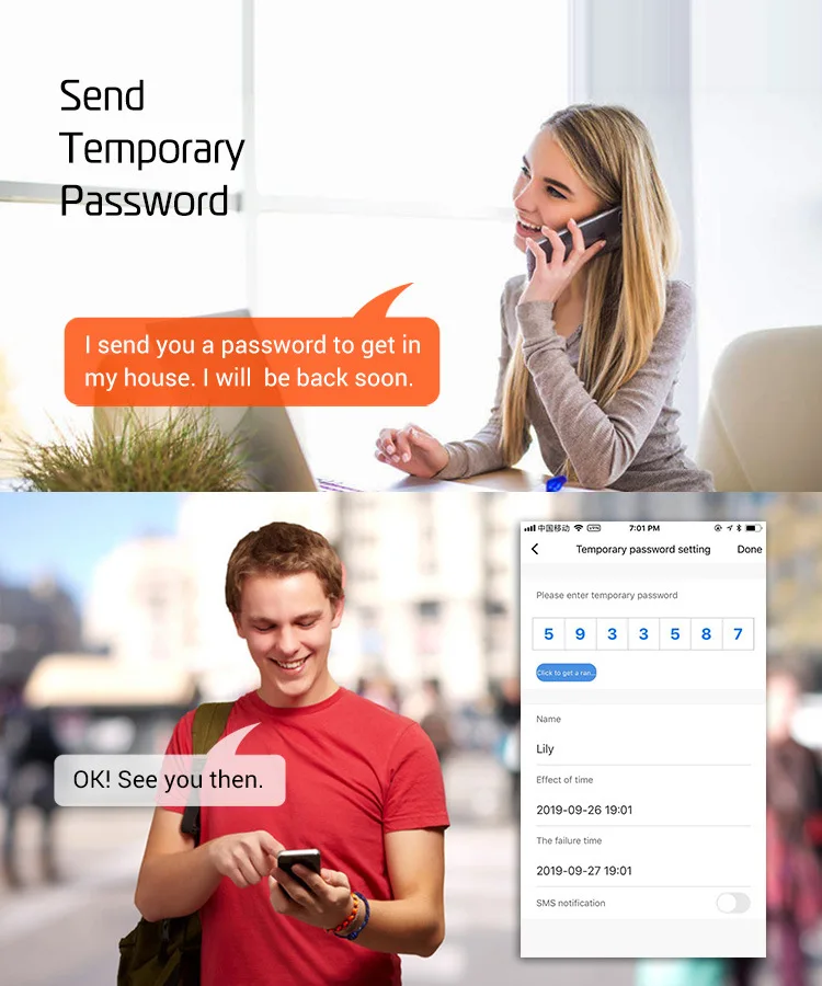 7 приложение Tuya может отправить временный пароль для разблокировки;