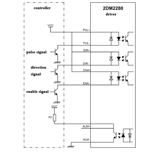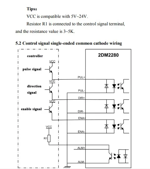 Tips: VCC is compatible with 5V~24V. Resistor R1 is connected to the control signal terminal, and the resistance value is 3~5K.