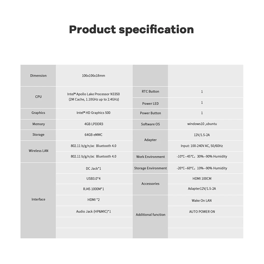 Intel® Apollo Lake N3350 (2 м Кэш, 1,10 ГГц до 2,4 ГГц)