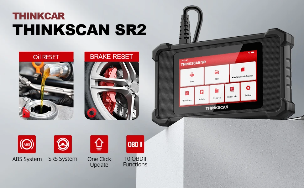 Сканирующий инструмент ThinkScan SR2 для всех транспортных средств имеет Пожизненное бесплатное обслуживание 2, которое можно модернизировать одним касанием, включая масло/тормоз. Восстановление и сброс модулей, связанных в считанные секунды после ремонта.