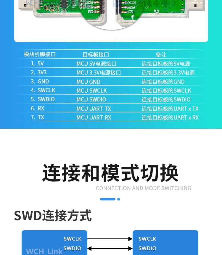 WCH-Link: на основе ch549gскачать отладчик для, доступен для SWD InterfacedARMChip и companyRISC-vзагрузка и отладка чипов серии (текущий supportCH32V103, CH32F103, CH32V307, F203, 569 CH583, CH573, CH579 Metc.), включая функцию виртуального последовательного порта.