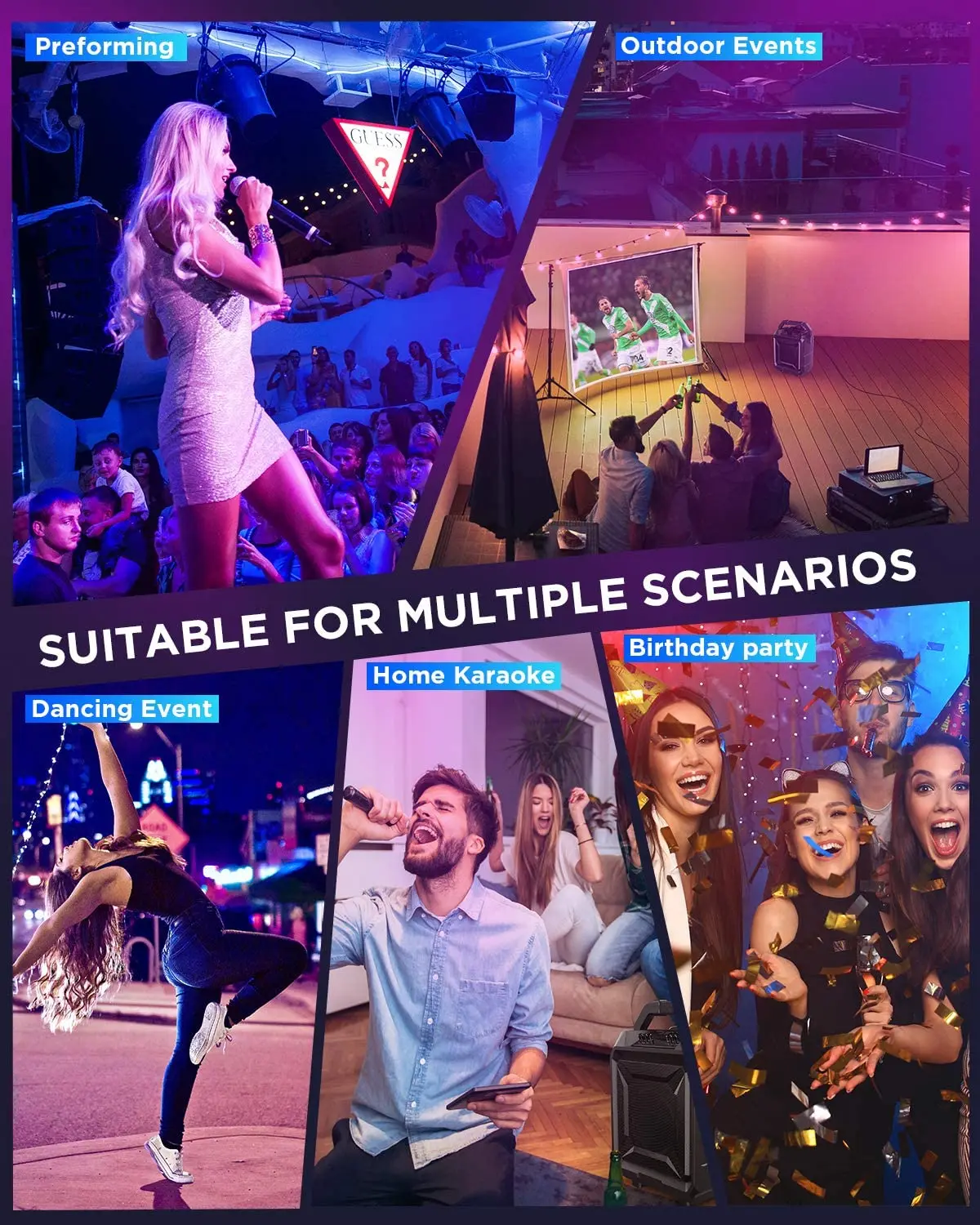 Портативный и многоцелевой: высокая мощность-100 Вт пиковая мощность может удовлетворить все ваши требования, такие как вечерние, уличные пения, Танцевальная практика, а также ваше пение караоке