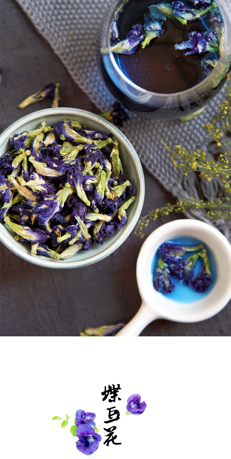 Голубая бабочка богата витаминами A, C и E, которые могут повысить иммунитет организма, помочь и повысить эластичность кожи и коллаген, а также оказывает эффект, дополняющий головной убор, который способствует жизненному действию мозга.