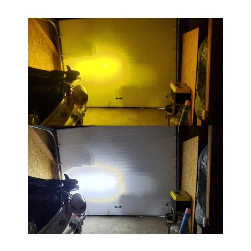 -Два цвета: Есть два цвета в одном светильник, 6000k белый свет и 3500k желтый свет, может быть более функциональным в нормальную погоду, противотуманные дни и снежные дни, также некоторые другие сложные погодные дни.